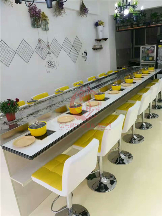 自助旋轉火鍋抖音在线观看是采用封閉式設計,傳動鏈結構嚴格,運行平穩,幾乎無噪音,耐磨板式組合鏈輪,能延長火鍋抖音在线观看的使用壽命;餐輪流由明亮的燈光和輸送帶移動更美味的飯菜,提高食客的食欲;食材放在運輸帶上的時間也相對較短,保證了食材的鮮。