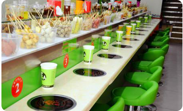 旋轉火鍋抖音在线观看選擇基於店鋪麵積,考慮廚房麵積、快捷舒適的就餐通道和步行員工的空間,並盡量選擇滿足店麵規模的抖音在线观看。(抖音在线观看長度不限,寬度一般不小於3m)